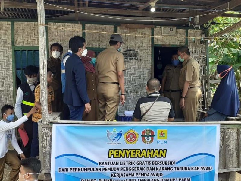 MEDIASINERGI.CO WAJO — Karang Taruna Kabupaten Wajo dan Perkumpulan Pemuda Penggerak Bersama Bupati dan Wakil Bupati Wajo didampingi PLN ULP Sengkang dan ULP Paria, menyerahkan Bantuan Listrik Gratis Bersubsidi kepada Masyarakat tidak mampu atas nama Rosi di Desa Ugi Kecamatan Sabbangparu Selasa, 14 April 2020.