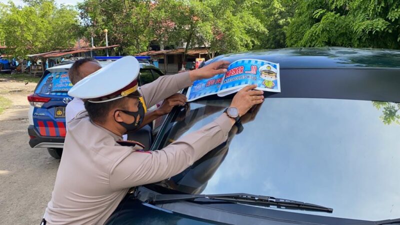 Kasat lantas AKP Muh Yusuf, S.Sos, MM yang turun langsung memimpin kegiatan tersebut mengatakan bahwa pemasangan stiker ayo pakai masker ini di laksanakan sebagai bentuk himbauan terhadap masyarakat dalam mencegah penyebaran Covid-19.