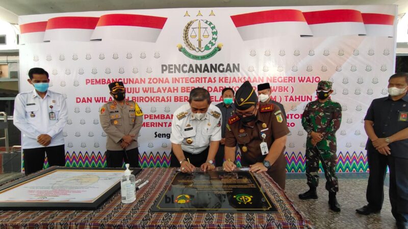 MEDIASINERGI.CO WAJO — Bupati Wajo H. Amran Mahmud menghadiri pencanangan zona integritas Kejakasaan Negeri Wajo menuju menuju wilayag bebas korupsi dan wilayah birokrasi bersih dan melayani, Rabu 13 Januari 2020.