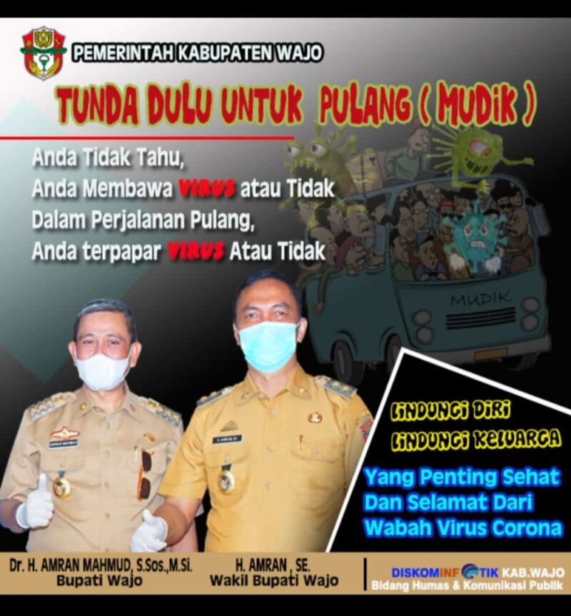 MEDIASINERGI.CO WAJO — Sebagai upaya mencegah penularan Covid-19, Pemerintah Kabupaten Wajo menegaskan bahwa pemerintah sepakat untuk melarang segala bentuk mudik selama periode Ramadan dan Idul Fitri 2021.