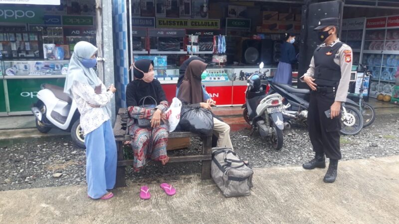 Pada kesempatan tersebut Aiptu Muh Rusdi memberikan peringatan kepada masyarakat yang tidak menggunakan Masker dan menghimbauan agar tetap mengikuti Protokol kesehatan yang baik.