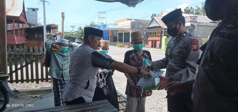 Kegiatan tersebut merupakan bagian dari rangkaian pencegahan penyebaran Covid-19. Selain membagikan masker, juga dibarengi dengan himbauan Kamtibmas.