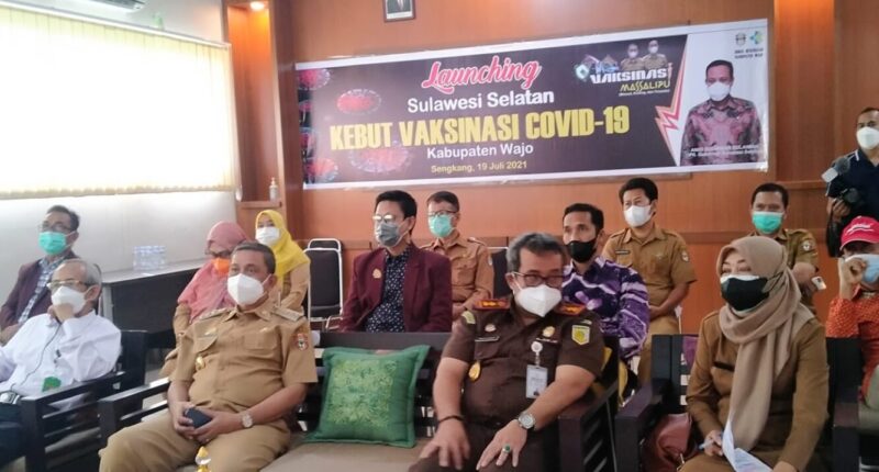 Launching yang digelar secara virtual dan diikuti Bupati dan Walikota se-Sulawesi-Selatan ini juga turut dihadiri Bupati Wajo Amran Mahmud, Kepala Dinas Kesehatan, Dr drg Armin dan Forkopimda Kabupaten Wajo.