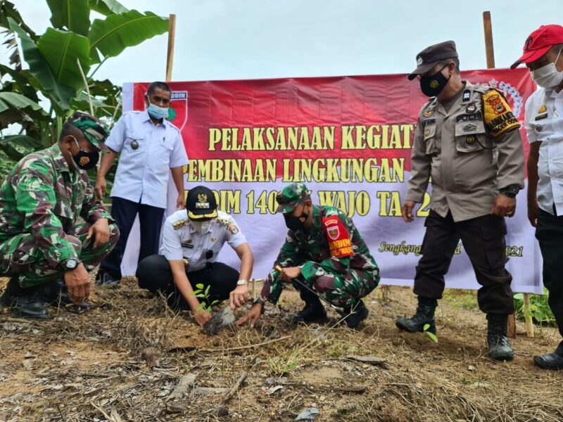 Bersama Kodim 1406, Pemkab Wajo Tanam 1.860 Pohon di Desa Mattirowalie