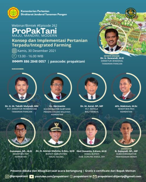 “Untuk memaksimalkan kawasan pertanian terpadu ini, kita telah bentuk Unit Pelaksana Teknis Dinas (UPTD) di Dinas Pertanian dan Ketahanan Pangan Wajo,” kata Amran yang membawakan materi webinar dari Kantor Bupati Wajo.