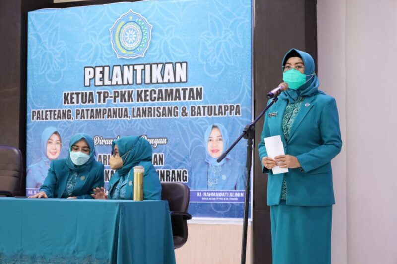MEDIASINERGI.CO PINRANG — Ketua Tim Penggerak PKK Kecamatan Patampanua, Paleteang, lanrisang dan Batulappa resmi dilantik Oleh Ketua Tim Penggerak PKK Kabupaten Pinrang Hj.A.Sri Widiyati Irwan di Gedung PKK Kabupaten Pinrang, Selasa (8/2/2022).