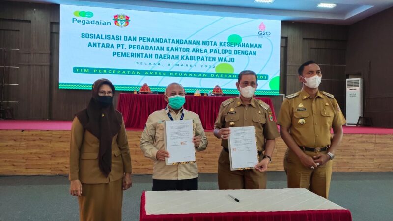 Penandatanganan yang dirangkaikan dengan sosialisasi terkait seluk-beluk Pegadaian ini dilakukan langsung Bupati Wajo, Amran Mahmud, mewakili Pemkab Wajo. Sementara, dari PT Pegadaian Kantor Area Palopo oleh Vice President (VP) PT Pegadaian Kantor Area Palopo, Sudjarwono.