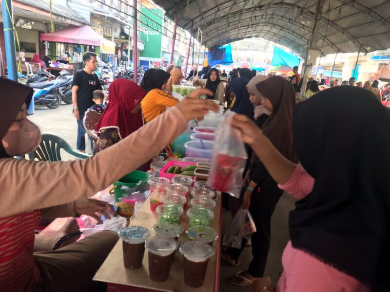 MEDIASINERGI.CO WAJO — Pasar takjil di Siwa Kabupaten Wajo Sulawesi Selatan menjual berbagai macam kue terutama yang diserbu gorengan seperti jalangkote, cendol, kalapa muda hingga bakwan yang diserbu.
