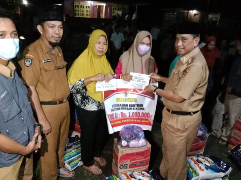 MEDIASINERGI.CO WAJO — Pemerintah Kabupaten (Pemkab) Wajo melalui dinas terkait bergerak sigap menangani musibah dan bencana alam yang terjadi dalam beberapa hari terakhir. Bantuan untuk pemenuhan kebutuhan dasar dan perlindungan korban telah tersalurkan ke lokasi. Santunan juga tengah diupayakan.