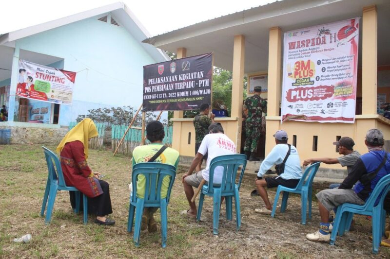 MEDIASINERGI.CO WAJO — Kodim 1406/Wajo menggelar giat Pos Pembinaan Terpadu (Posbindu) Penyakit Tidak Menular (PTM). Giat tersebut merupakan sasaran Non Fisik TMMD Ke-113 tahun 2022.