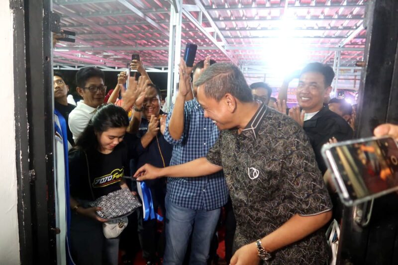 Amran Mahmud dan Amran tiba di lokasi pukul 22.00 Wita usai mengikuti agenda lain. Meski sudah agak larut malam, keduanya tetap disambut antusias para pedagang serta lantunan doa dan zikir majelis taklim.