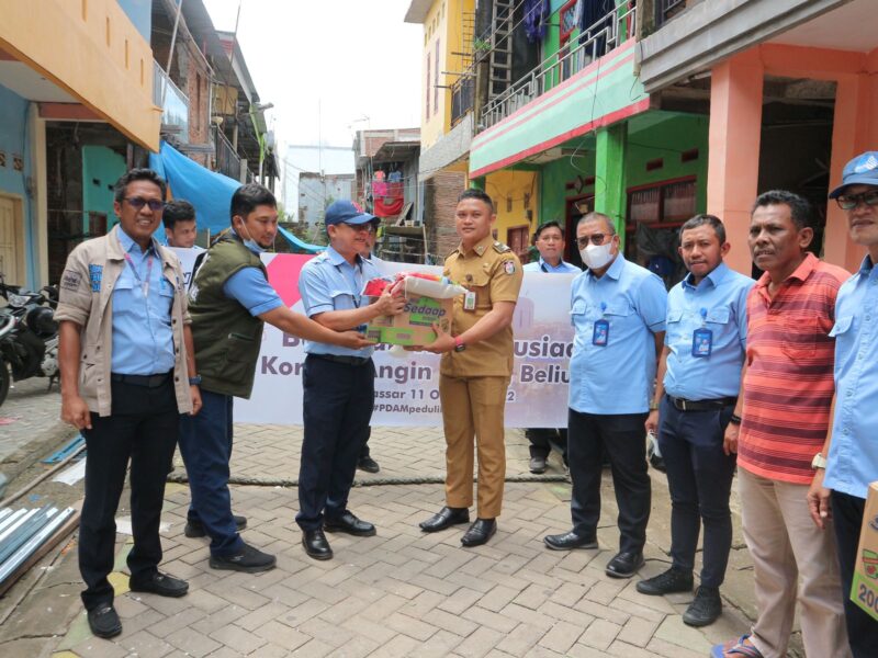MEDIASINERGI.COMAKASSAR — Perumda Air Minum Kota Makassar melalui program #PDAMPeduli berkunjung ke korban angin puting beliung di Kelurahan Maccini Sombala, selasa, 11 Oktober 2022.