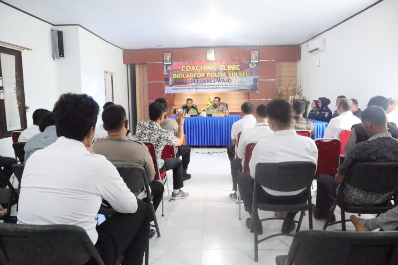 Kapolres Wajo AKBP Fatchur Rochman diwakili Waka Polres Wajo Kompol H. Muhtar membenarkan bahwa,pada hari ini, Jumat 18 November 2022 telah di gelar Kegiatan Coaching Clinic oleh Bidang Laboratorium Foremsik Polda Sulawesi Selatan.
