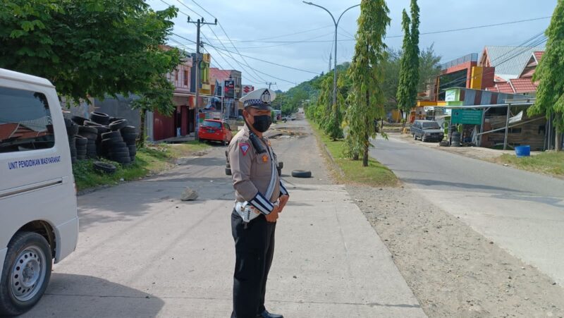 MEDIASINERGI.CO WAJO — Sat Lantas Polres Wajo Polda Sulawesi Selatan melaksanakan himbauan kepada pengendara yang melintas di Jl. Sawerigading agar berhati-hati karena kondisi jalan mengalami kerusakan.Senin (19/12/2022).