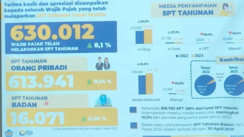 Lanjut Arridel Mindra secara rinci, terdapat 613.941 SPT wajib pajak orang pribadi dan 16.071 SPT wajib pajak badan yang disampaikan hingga tanggal 31 Maret 2023.