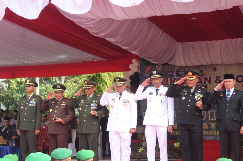 LINTASCELEBES.COM WAJO — Komando Distrik Militer (Kodim) 1406 Wajo menggelar Upacara dalam rangka Hari Ulang Tahun (HUT) Tentara Nasional Indonesia (TNI) ke 78 di Lapangan Merdeka Sengkang, Kamis (5/10/2023). Peringatan HUT ke-78 TNI di Kabupaten Wajo digelar meriah tahun ini.