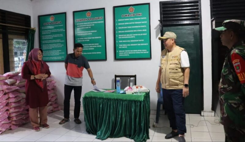MEDIASINERGI.CO WAJO — Pj Bupati Wajo, Andi Bataralifu mengunjungi lokasi penampungan bantuan pangan serta logistik warga yang terkena dampak bencana alam banjir yang ditempatkan di Koramil Siwa Kecamatan Pitumpanua.