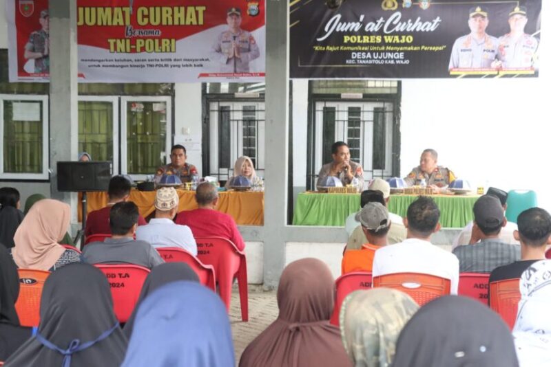 MEDIASINERGI.CO WAJO — Kapolres Wajo AKBP Muhammad Rosid Rhido mengadakan kegiatan bertajuk “Jumat Curhat” untuk mendengarkan keluhan masyarakat di Desa Ujunge Kecamatan Tanasitolo, Kabupaten Wajo. Jum’at 26 Juli 2024)