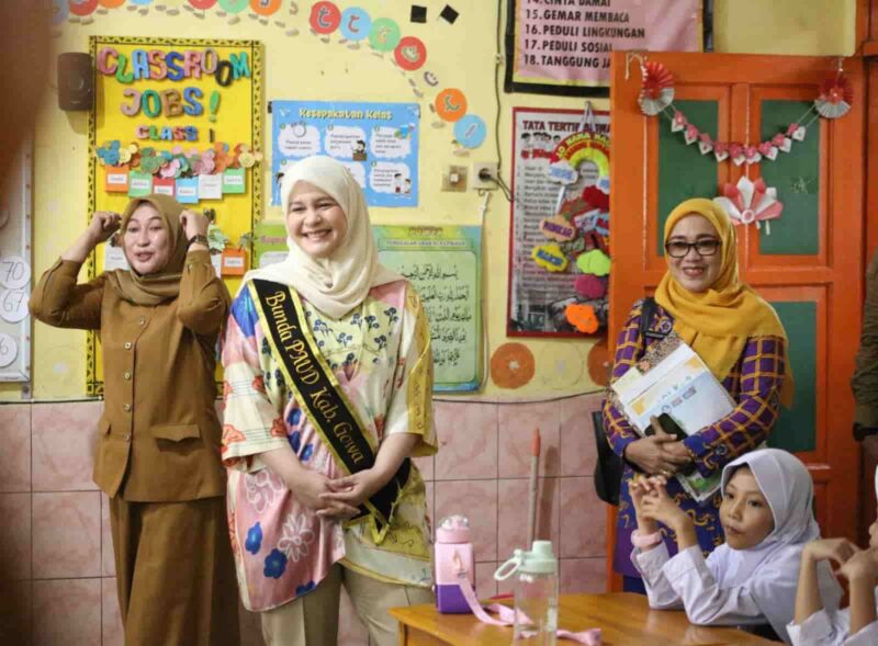 MEDIASINERGI.CO GOWA — Bunda PAUD Kabupaten Gowa, Priska Paramita Adnan didampingi Kepala Dinas Pendidikan Kabupaten Gowa, Taufik Mursad memantau langsung pelaksanaan Masa Pengenalan Lingkungan Sekolah (MPLS) di SD Negeri Bontokamase, Kecamatan Somba Opu, Kabupaten Gowa, Senin 29 Juli 2024.