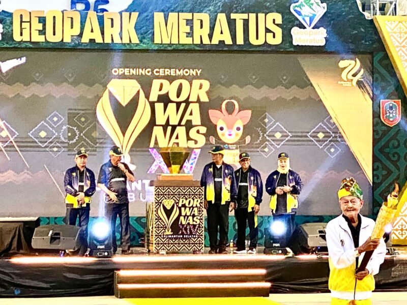 MEDIASINERGI.CO. BANJARBARU — Dimeriahkan dengan tarian kolosal Geopark Meratus, Gubernur Kalimantan Selatan (Kalsel) Sahbirin Noor membuka secara resmi Pekan Olahraga Wartawan Nasional (Porwanas) XIV Tahun 2024 di Gelora Paman Birin Banjar baru, Kalimantan Selatan (Kalsel), Kamis 22 Agustus 2024.