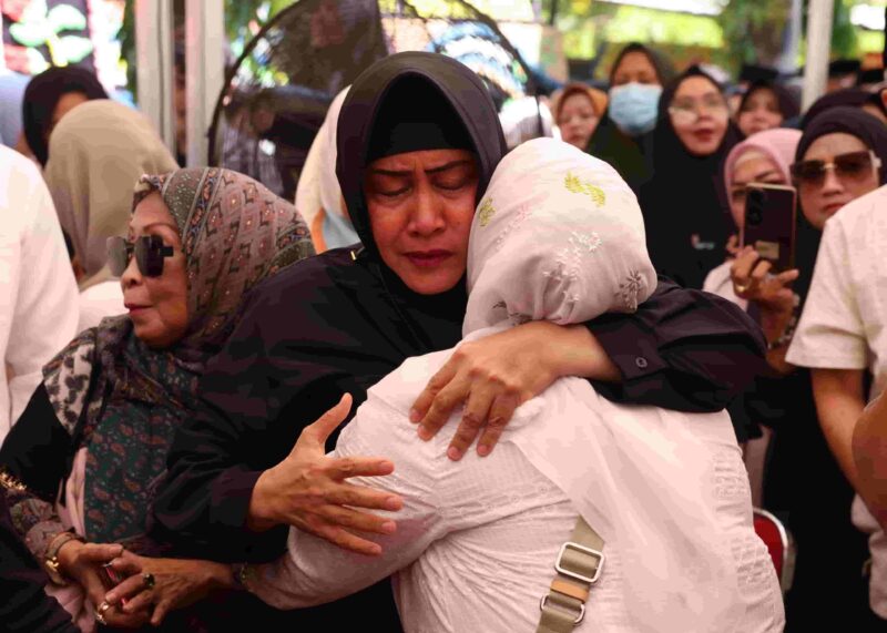 Dalam momen yang penuh haru tersebut, Indira terlihat berusaha menenangkan istri almarhum yang tampak sangat terpukul atas kepergian suaminya. Indira merangkul sang istri erat, sambil memberikan kata-kata penghiburan dan dukungan moril.