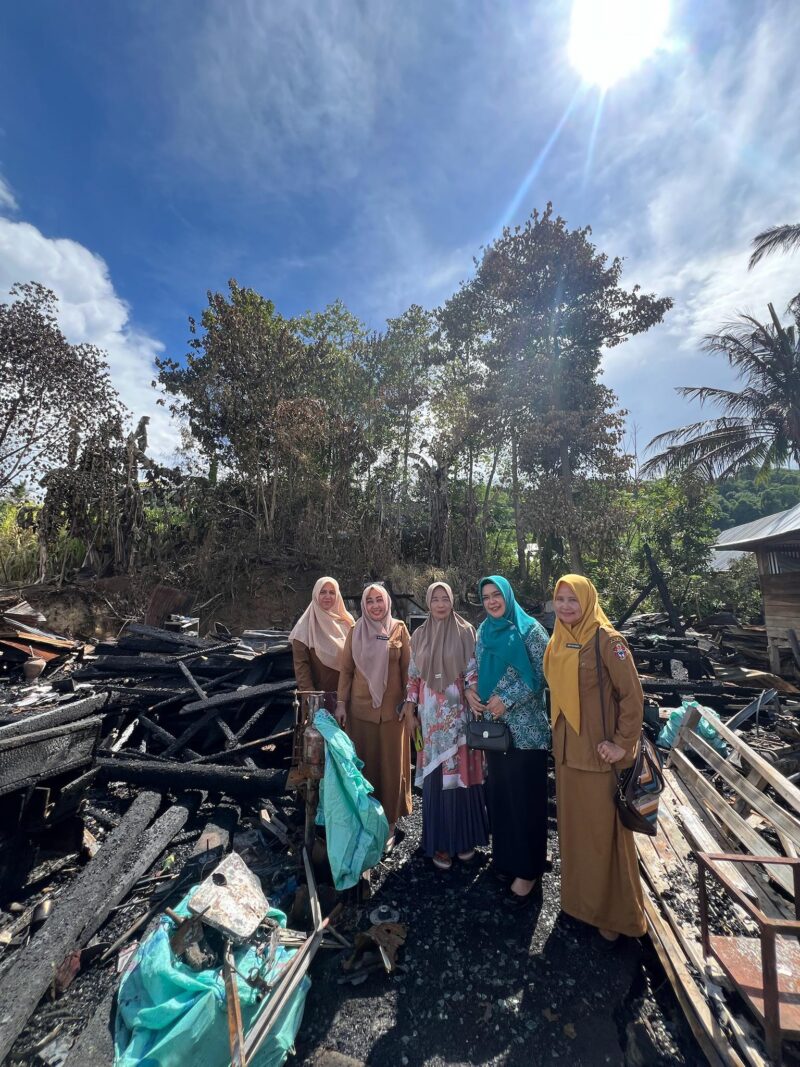 Dihadapan korban kebakaran, Hj Hj. Fatmawati AR menyampaikan rasa prihatinnya dan turut berduka cita yang sedalam-dalamnya atas musibah kebakaran yang terjadi.