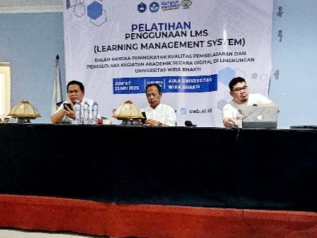 MEDIASINERGI.CO MAKASSAR — Sebanyak kurang lebih 50-an dosen Universitas Wira Bhakti Makassar mengikuti kegiatan Pelatihan Penggunaan Moodle LMS (Learning Management System) yang berlangsung Jumat (23/5/2025) siang sampai sore hari di Aula Universitas Wira Bhakti Jl. A.P. Pettarani No.72 Kota Makassar.