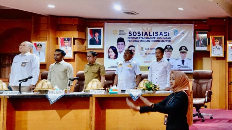 Pemerintah Kabupaten Soppeng berkomitmen untuk mempermudah proses pengurusan berkas bagi warga yang ingin bekerja di luar negeri secara prosedural,ungkap Wakil Bupati pada acara sosialisasi penempatan dan perlindungan Pekerja Migran Indonesia (PMI) yang diugelar Balai Pelayanan Perlindungan PMI(BP3MI) Sulawesi Selatan di ruang pola kantor bupati, Selasa 08 Juli 2025 .