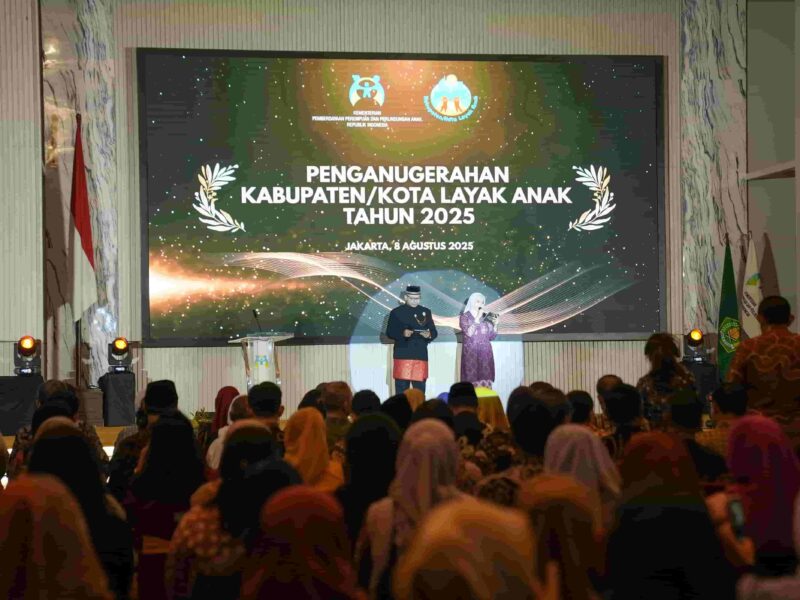 Penghargaan tersebut diserahkan langsung oleh Wakil Menteri PPPA, Veronica Tan, pada malam penganugerahan KLA di Ballroom H. Muhammad Rasyidi, Kementerian Agama RI, Jakarta, Jum’at 8 Agustus 2025.