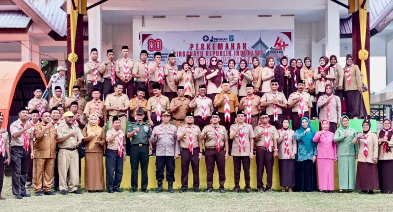 MEDIASINERGI.CO SOPPENG — Ketua Kwartir Cabang (Kwarcab) Pramuka Kabupaten Soppeng Syahruddin M Adam S,Sos MM selaku pembina upacara membuka perkemahan Pramuka se Kecamatan Lalabata di KWA Ompo, Selasa 26 Agustus 2025.