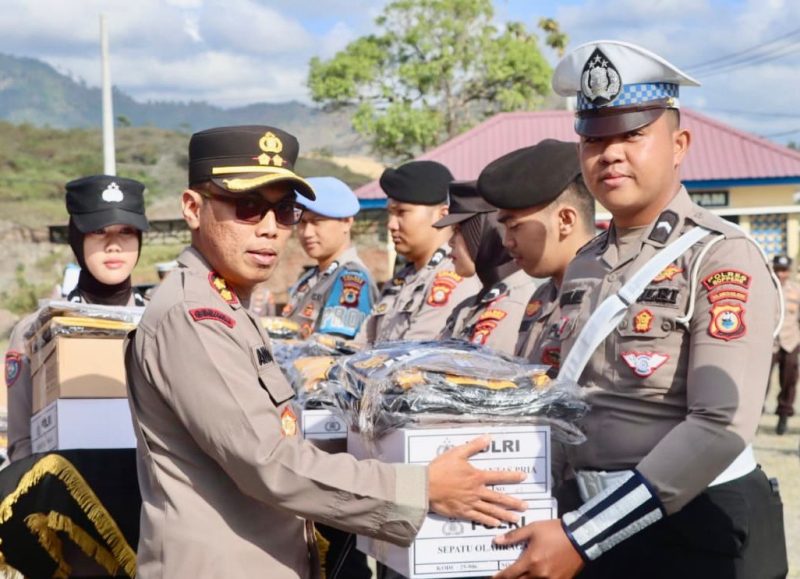 MEDIASINERGI.CO SOPPENG – Kapolres Soppeng AKBP Aditya Pradana S,IK M,IK menyerahkan secara simbolis kelengkapan perorangan lapangan (Kaporlap) kepada anggota Polri dan PNS di halaman Mapolres Jalan La Tenri Bali Watansopeng ,Senin 1 September 2025.