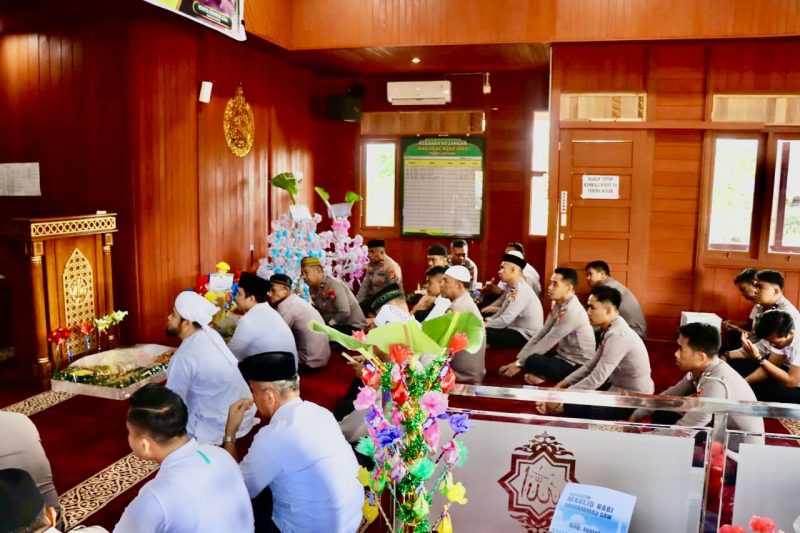 ​Perigatan Maulid Nabi Muhammad SAW. Mengusung Thema “Meneladani akhlak Rasulullah SAW ,kita wujudkan Polri Presisi guna mendukung Asta Cita “.dihadiri Kapolres AKBP. Aditya Pradana. S,IK., M,IK bersama segenap PJU, Ketua bersama pengurus dan anggota Byayangkari dan segenap personel.