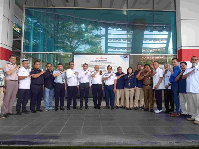MEDIASINERGI.CO MAKASSAR — Dinas Perhubungan Kota Makassar turut mendukung langkah strategis dalam menjaga keamanan, ketertiban, dan kelancaran aktivitas di kawasan pelabuhan melalui kegiatan Penandatanganan Deklarasi Bersama Kondusifitas Pelabuhan Makassar, di Kantor PT. Pelindo (Persero) Regional IV, Jalan Hatta No.1 Makassar, Selasa 28 Oktober 2025.