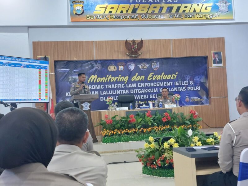 WAJO – Personel Satuan Lalu Lintas (Sat Lantas) Polres Wajo mengikuti kegiatan monitoring dan evaluasi Electronic Traffic Law Enforcement (ETLE) serta penanganan kecelakaan lalu lintas yang digelar Direktorat Penegakan Hukum (Ditgakkum) Korlantas Polri, Rabu 1 April 2026.