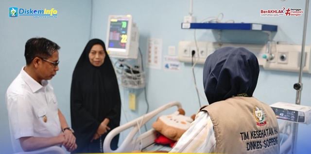 SOPPENG Wakil Bupati Soppeng Ir Selle Ks Dalle secara khusus datang membesuk Jamaah Calon Haji (JCH) Perempuan Rahmi Binti Madeing Labbase (47) warga Caccaleppeng Kelurahan Jennae Kecamatan Liliriaja. Yang bersangkutan sementara dirawat di Pusat Jantung Terpadu (PJT) RS Wahidin Sudirohusodo Makassar, Rabu 22 April 2026.